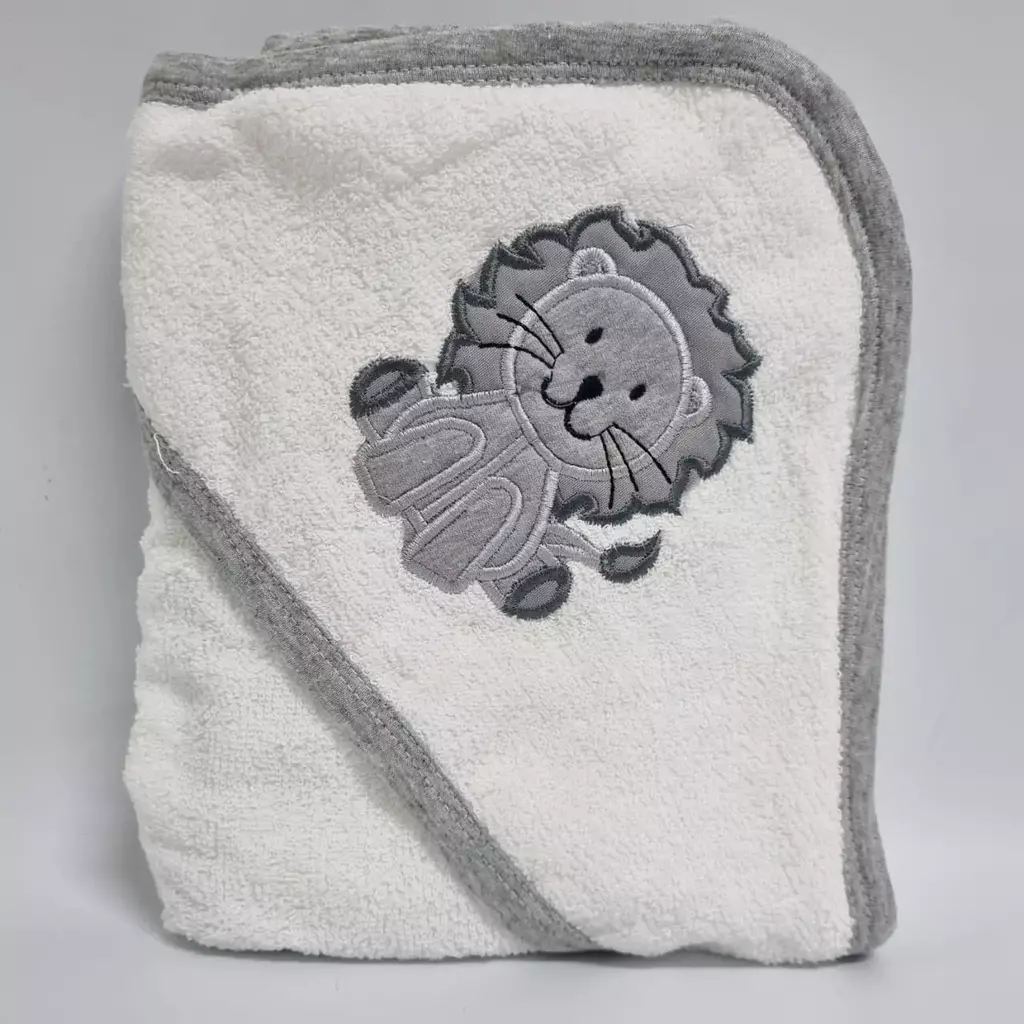 La suavidad que tu bebé merece en cada baño. Confeccionada en 100% algodón, esta toalla blanca de 75 x 75 cm incluye capucha con delicado bordado, ideal para abrigar y proteger al recién nacido después del agua.
